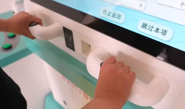 測試方法:在測試平臺上拿出握力測試手柄,根據(jù)語音提示開始測試,默認2次,測試完成后保存最優(yōu)成績;