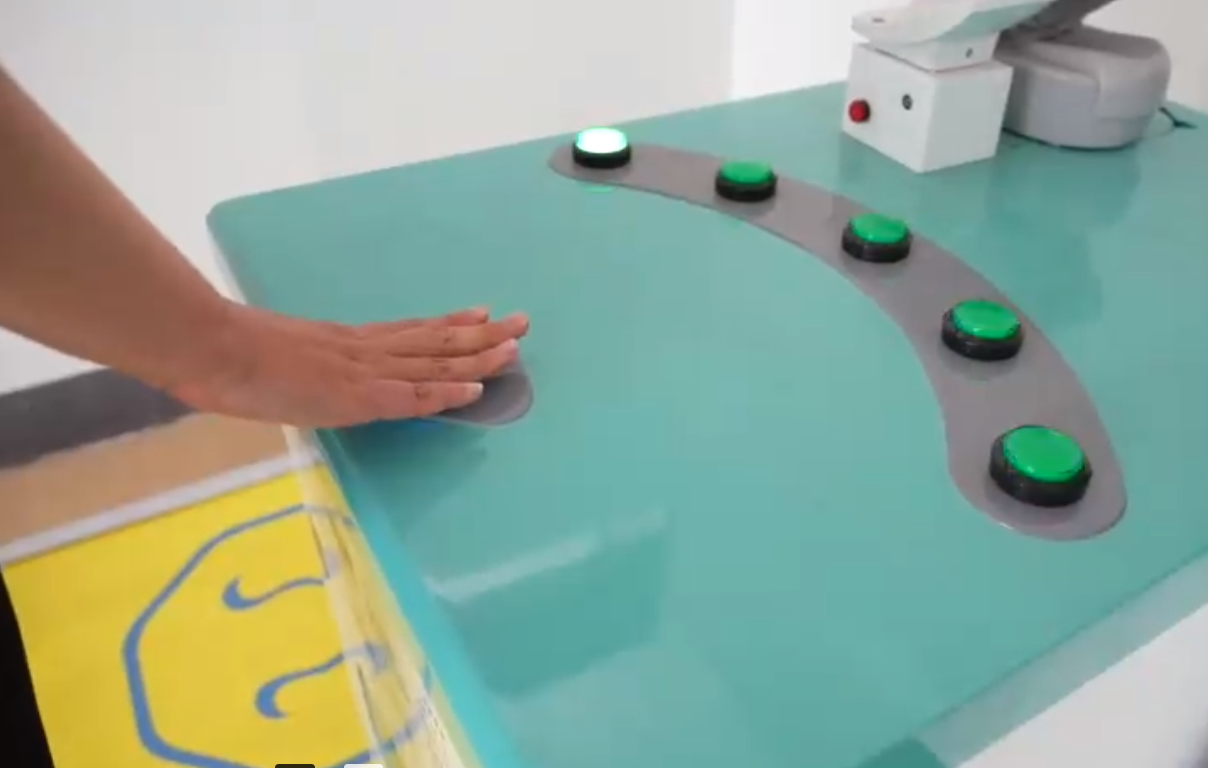 測試方法:去往俯臥撐測試區(qū),雙手放到測試區(qū)內(nèi)的手印上,聽到開始測試語音提示后開始測試,測試傳感器上方設(shè)有小顯示屏,實時觀看測試個數(shù)和剩余時間,倒計時為0測試結(jié)束;如有不適可直接按緊急放氣按鈕停止測試。